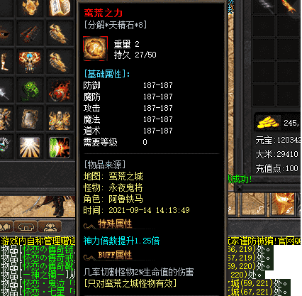 一般来说,我们在遇到难以攻略的副本时,最常用到的策略就是更换适合的装备,因为新的装备能给我们提供全新的属性和能力,当然也会提升我们之前属性的数值。而在遇到蛮荒之城副本区域时,更换普通装备的收效甚微,因为这里怪物的平均血量都非常高,很多时候我们都不是因为扛不住伤害,而是因为输出不够导致战斗的时间过长。所以为了解决这个问题,我们就不得不在一些特殊的装备上下功夫,而这里我极力推荐的装备就是专门用来针对蛮荒之城的蛮荒之力。